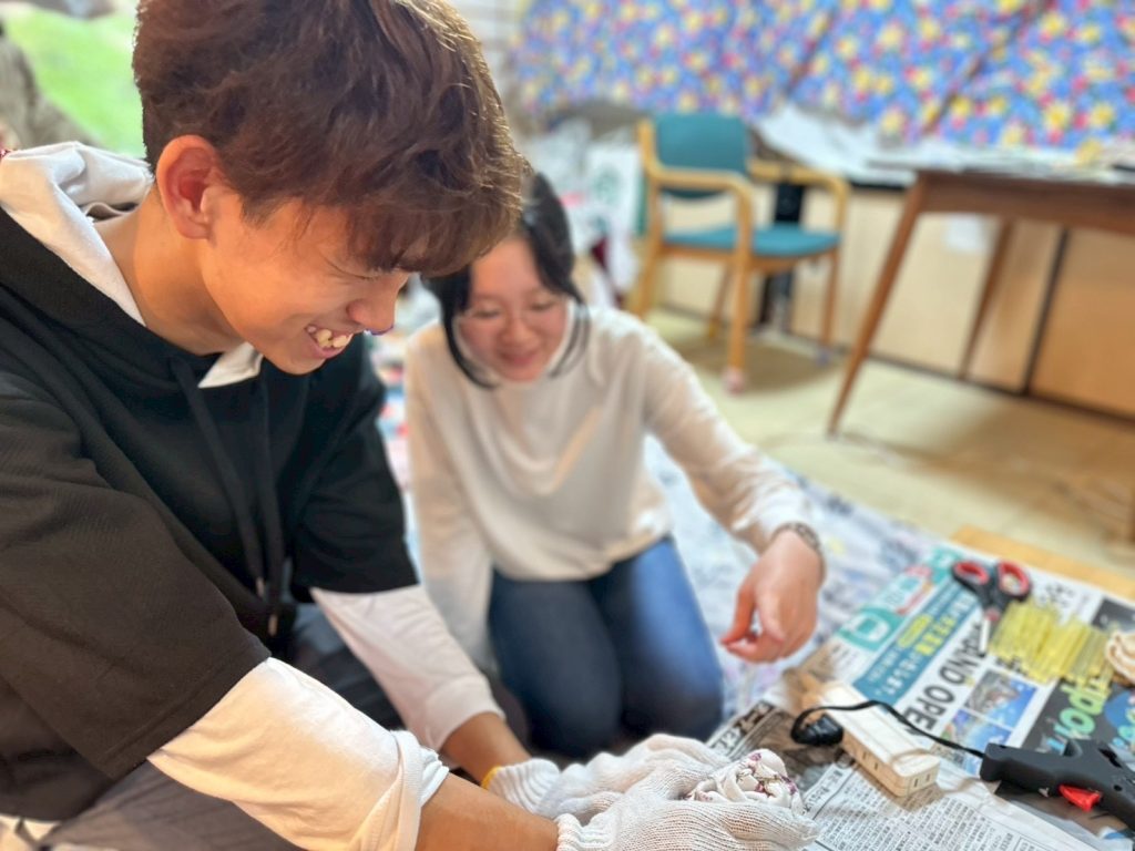 皆さん、すっかり慣れた手つきで、次々と「ぐるぐるマット」を作ってくださいました!キッズスペースの完成も、もう間もなくです。