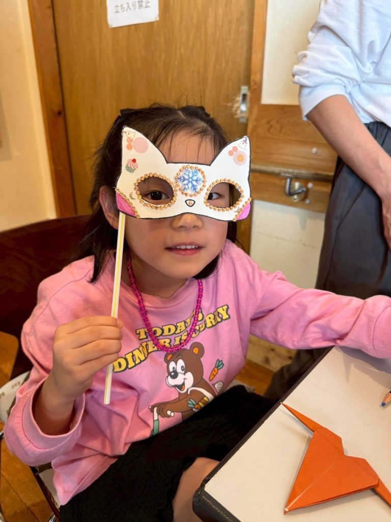 学生サポーターさんたちが考えてくれたお面作りに取り組みました♪