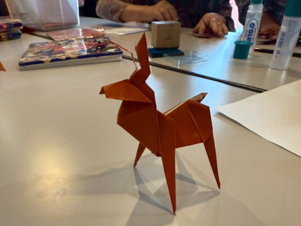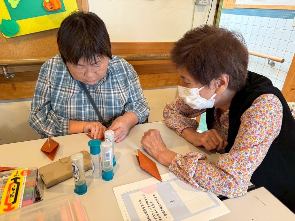 皆さん手先に集中して真剣な表情!地域で折り紙が得意な方が、“鹿“の折り方を教えてくださいました。