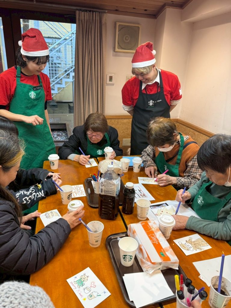 スターバックス様のご協力の元、先着50名限定で『バリスタ体験』とコーヒー豆で作った絵具を使った『オリジナルポストカード作り』を行いました。