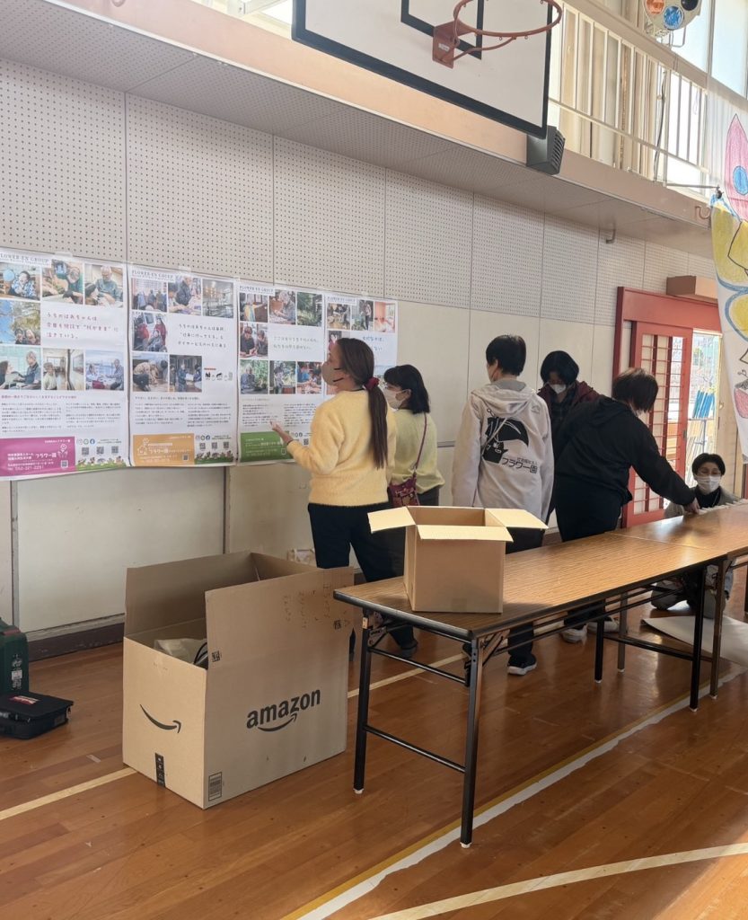 本日、会場となる名古屋市立露橋小学校の体育館にて、前日リハーサルと設営が行われました。