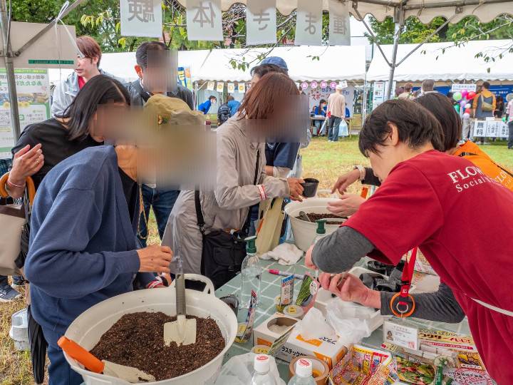 地域の皆さまと交流することを目的に、フラワー園も「種まき体験ブース」として参加しました。