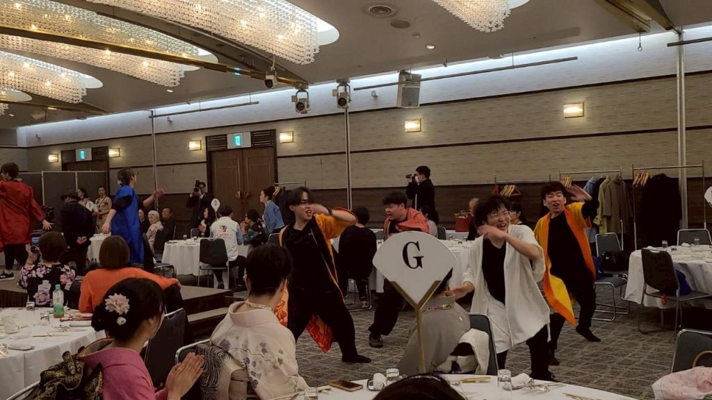ホテルアイリス愛知様で「台湾と日本の交流会」が開催され、主催者の方からオファーをいただき、日本伝統のソーラン節を20人にて踊り上げました